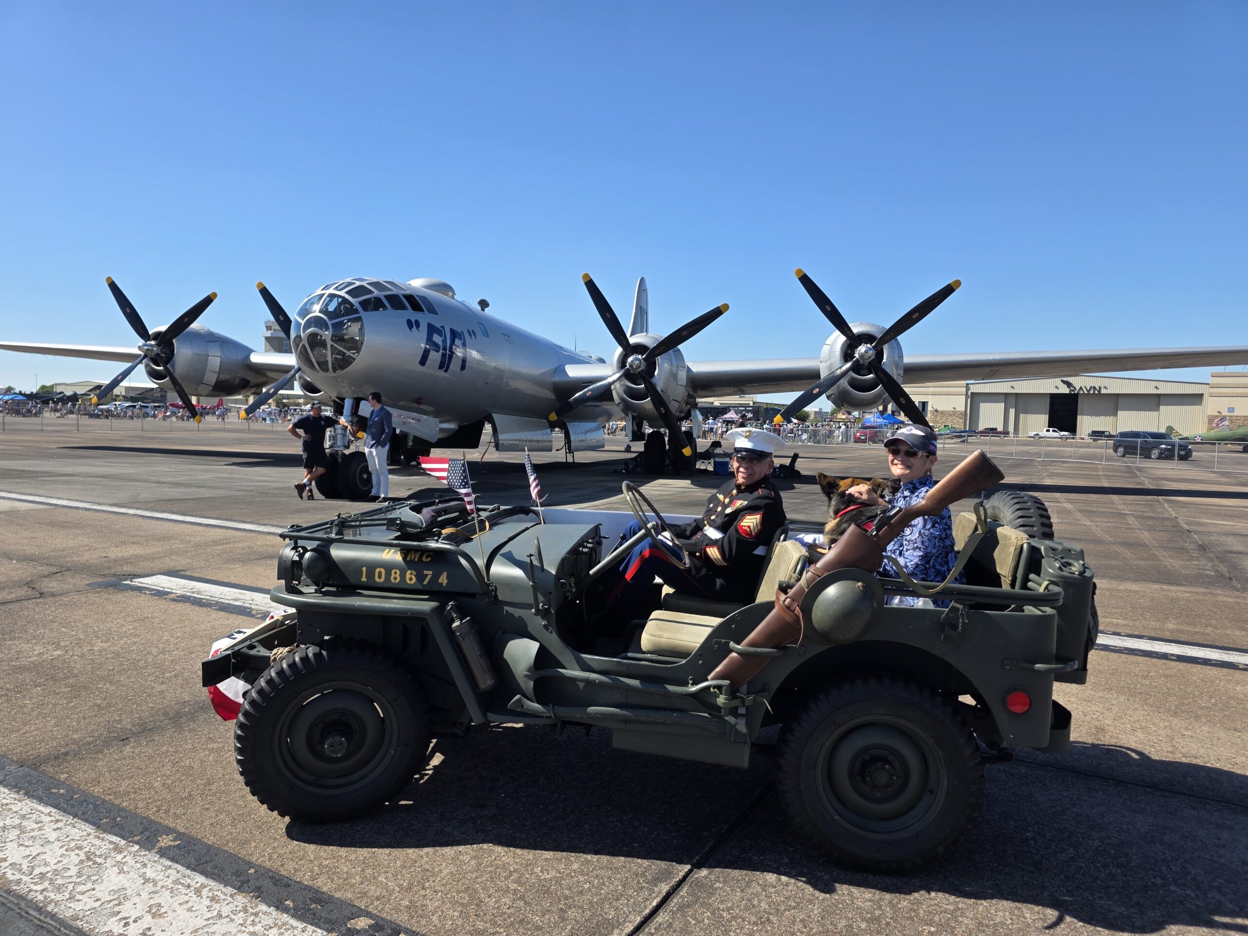 The airshow covered over a mile of airfield. Spectators were up close to the taxiway with spectacular views of precision flying. It was real treat to see such a variety of aircraft, to include NASA and commercial aircraft. The only two operational and (still!) flying B-29 Superfortresses, nicknamed FiFi and Doc, flew in tandem. The aircraft of Tora! Tora! Tora! put on a pyro show that sure did make us jump. We also watched the preshow with Make-A-Wish children. One inspirational young man started his own nonprofit to help other children who are suffering from cancer.